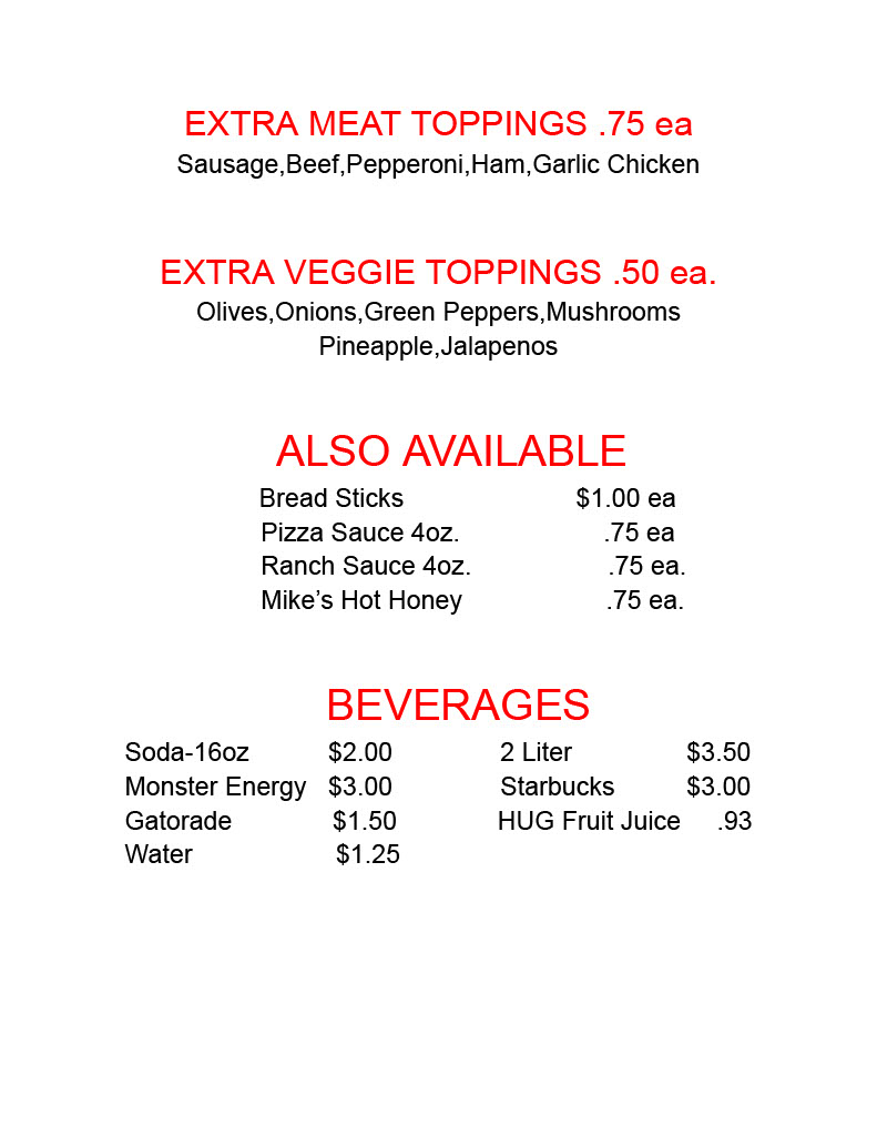 UpTown Pizza Menu